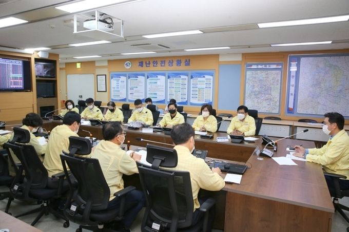 [천안=충남도민일보]정연호기자/ 천안시의회(의장 황천순)는 25일 11시 코로나19 바이러스 재확산에 따른 대응 상황 점검을 위해 천안시재난안전대책본부를 방문하여 천안시 관계부서장으로부터 현재상황과 대응방안에 대한 보고를 받았다.