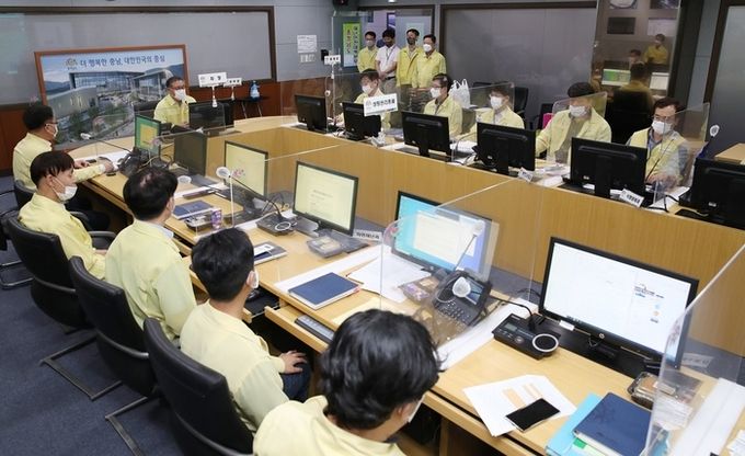 [충남=충남도민일보]정연호기자/ 김명선 충남도의회 의장은 지난 26일 오후 충남도 재난안전대책본부를 방문해 8호 태풍 ‘바비’ 북상에 따른 대응상황을 점검했다.