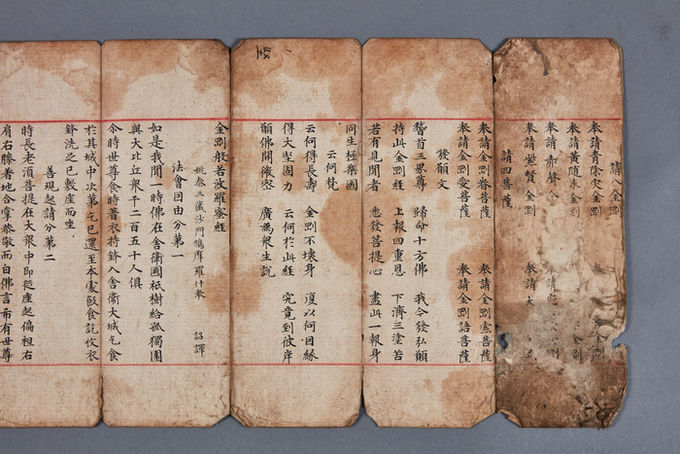 고려본을 포함해 조선시대 16세기 중반까지 간행된 서적들이며 필사본으로는 백지에 묵서로 서사한 금강반야바라밀경 1점이 있고, 나머지 7점은 모두 목판본이다.