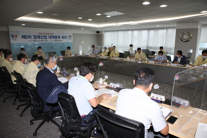 도는 27일 도청에서 김용찬 행정부지사를 비롯한 경제·산업분야 관련부서, 전문가 등이 참석한 가운데, ‘제6차 경제산업대책본부 회의’를 개최했다.