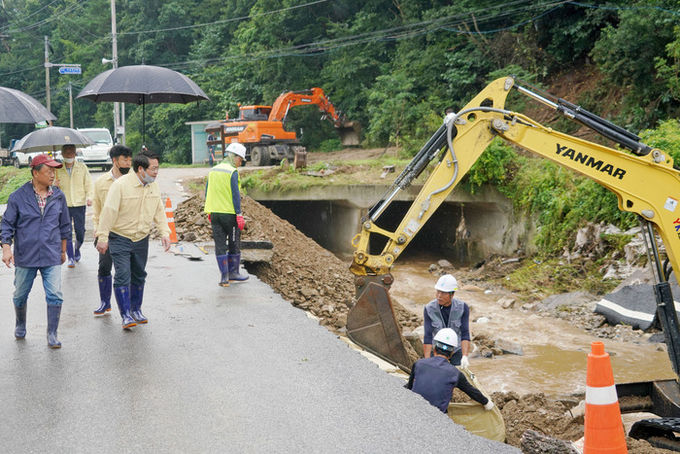 시는 집중호우 피해지역에 대한 응급복구를 위해 ‘선조치 후정산’ 방침을 정하고 15억의 예비비와 국・도비를 활용해 현장의 읍면동장 판단 하에 굴삭기, 덤프트럭 등 중장비를 최대한 동원, 응급복구에 투입했다.