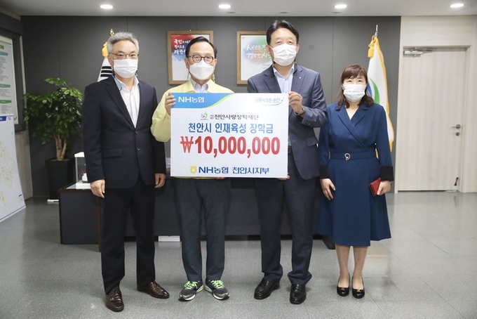 다양한 봉사활동과 후원 활동을 통해 지역사회 발전을 위해 노력하고 있는 NH농협 천안시지부는 이날 1000만원 장학금을 전달했다.