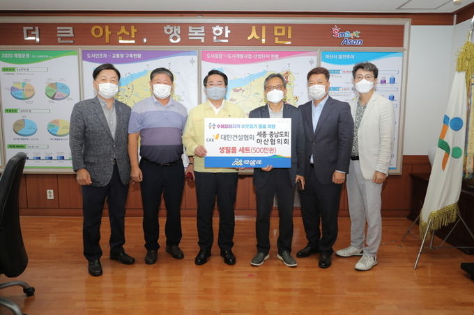 [아산=충남도민일보]정연호기자/ 대한건설협회 세종·충남도회 아산시협의회(회장 박종완)가 주택침수 등으로 어려움을 겪고 있는 주민을 위해 지난 10일 아산시(시장 오세현)에 500만원 상당의 생필품 세트를 기부했다.