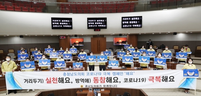 [충남=충남도민일보]정연호기자/ 충남도의회(의장 김명선)가 신종 코로나바이러스 감염증(코로나19) 위기를 극복하기 위한 ‘해요’ 챌린지 캠페인에 나섰다.