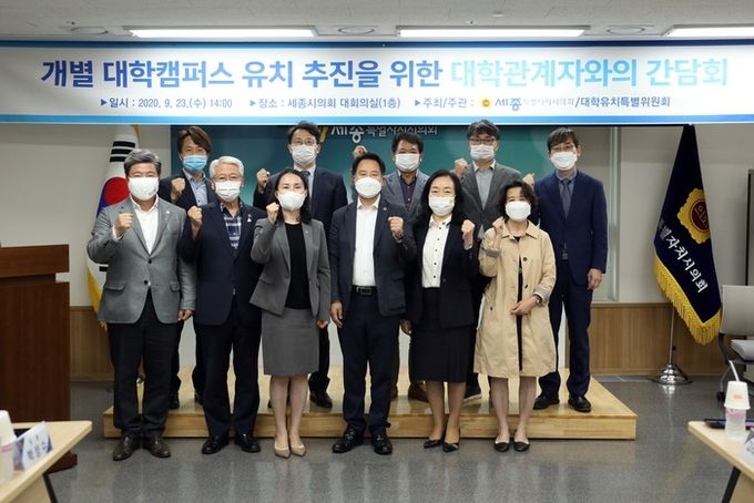 [세종=충남도민일보]정연호기자/ 세종특별자치시의회 ‘대학캠퍼스 유치 특별위원회’(위원장 상병헌)는23일 의회청사 대회의실에서 ‘개별 대학캠퍼스 유치를 위한 대학관계자와의 간담회’를 가졌다.