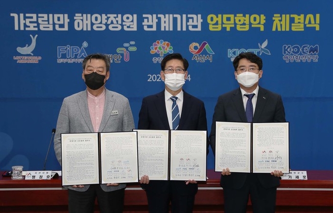 이날 협약은 가로림만 해양정원 및 해양보호구역 관리 기반을 마련해 예타에 대응하고, 해양 생태계 보전과 지속가능한 발전을 위한 공동 협력을 위해 맺었다.