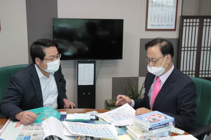 [아산=충남도민일보]정연호기자/ 오세현 아산시장이 코로나19 방역 중점활동의 여파로 잠시 멈췄던 국비 활동을 재개하고 주요현안 사업 협의와 국비확보를 위해 24일 국회를 방문하여 이명수・강훈식 의원, 복기왕 국회의장 비서실장을 찾아 지원을 요청했다.