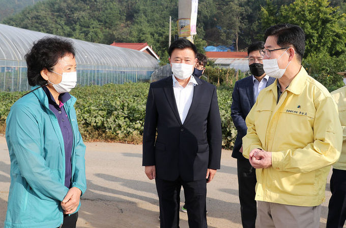 [충남=충남도민일보]정연호기자/ 양승조 충남지사는 29일 추석 명절을 앞두고 예산군 대술면 조립주택에 거주하는 이재민을 찾아 위로하고, 위문품을 전달했다.