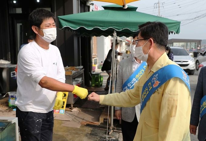 남당항 해양수산복합센터를 찾은 자리에서는 코로나19로 어려움을 겪고 있는 상인들에게 위로의 뜻을 전했다.