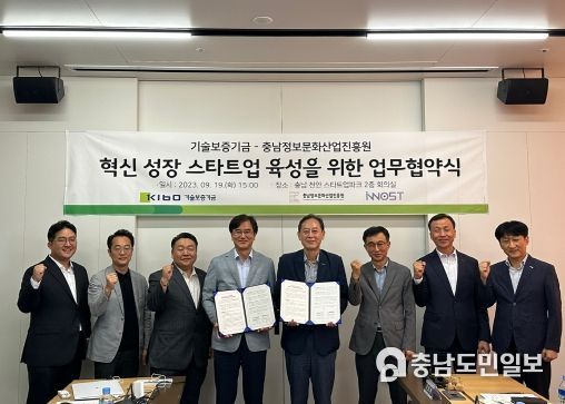 (충남도민일보) 충남정보문화산업진흥원이 기술보증기금 충청지역본부와 ‘혁신성장 스타트업 육성을 위한 업무협약식’을 19일에 체결했다.
