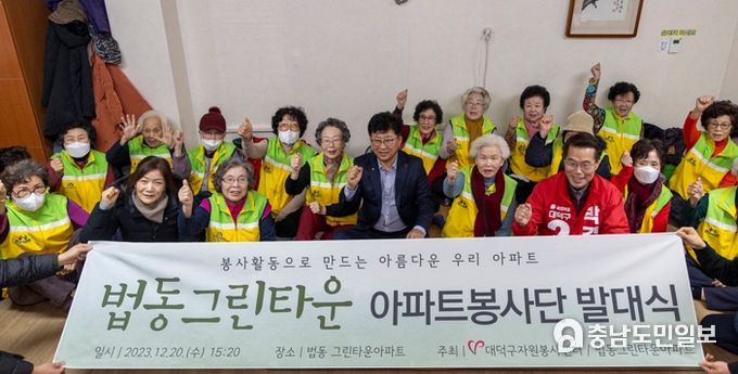 (충남도민일보 / 정호영기자) (사)대덕구자원봉사센터는 ‘법동그린타운 아파트봉사단’의 발대식을 갖고 본격 봉사활동에 나섰다고 21일 밝혔다.