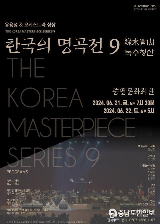(충남도민일보 / TV / 정호영기자) 충북 증평군은 오는 21일과 22일 이틀간 증평문화회관에서 ‘한국의 명곡전 9 녹수청산(綠水靑山)’공연을 개최한다고 밝혔다.