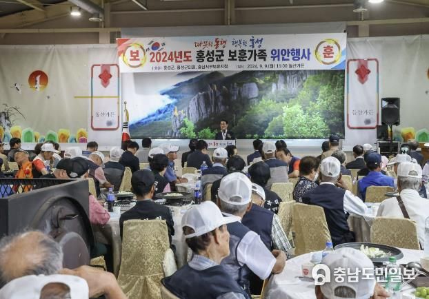(충남도민일보(도민방송) 정연호기자) 홍성군 보훈단체협의회는 추석 명절의 따뜻함을 나누기 위해 9일 보훈가족 300여 명을 초청하여 ‘2024년 보훈가족 위안잔치’를 성대하게 개최했다.
