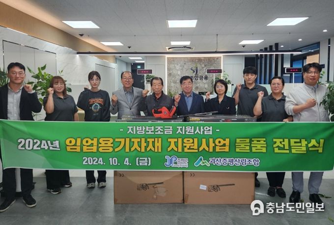(충남도민일보(도민방송) 정연호기자) 충북 증평군은 지난 4일 괴산증평산림조합 증평지소에서 ‘2024년 임업용 기자재 지원사업’ 기자재 전달식을 가졌다고 밝혔다.