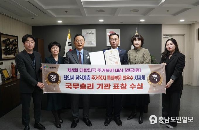 (충남도민일보(도민방송) 정연호기자) 천안시는 국토교통부 주최 ‘2024년 대한민국 주거복지대전’에서 취약계층 주거복지대상 지역특화부문 최우수 지자체로 선정돼 국무총리상을 받았다고 11일 밝혔다