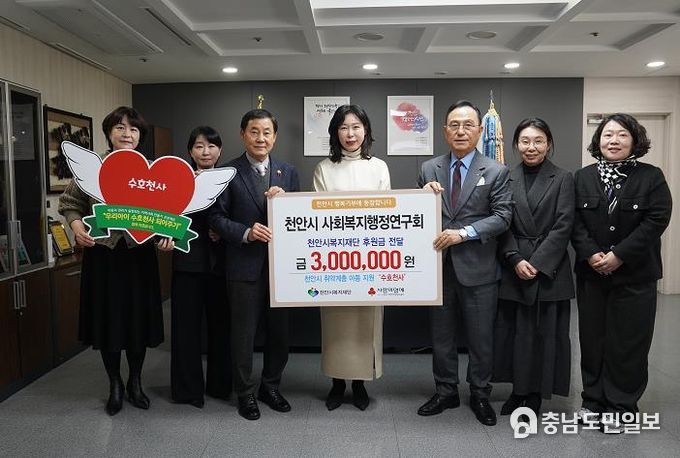 이날 사회복지행정연구회는 천안시청에서 후원금 300만 원을 천안시복지재단에 전달했다.