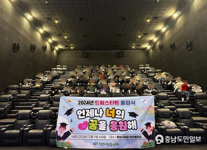 (충남도민일보(도민방송) 정연호기자) 천안시 드림스타트는 11일 초등학교 졸업을 앞둔 사례관리 종결 예정 아동과 가족 80명을 대상으로 롯데시네마 천안불당점에서 ‘모두의 졸업식’ 행사를 열었다.