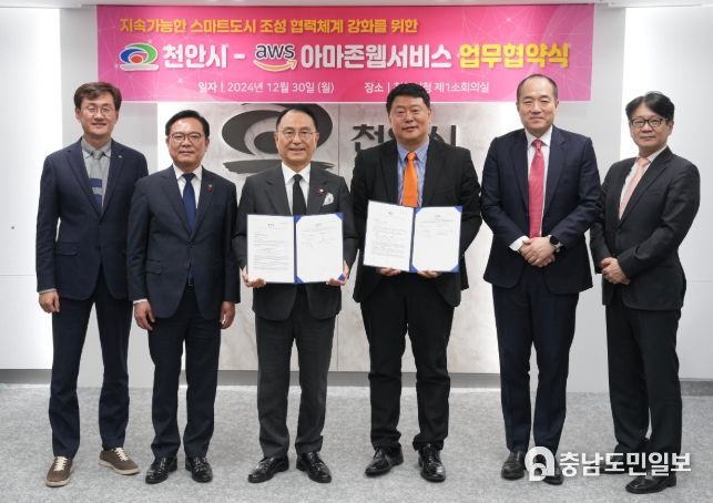 천안시는 30일 아마존과 스마트도시 산업생태계 활성화 및 글로벌 협력체계 구축을 위한 업무협약을 체결했다.