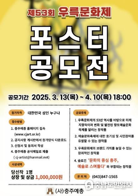 (충남도민일보(도민방송) 정연호기자) 충주시는 (사)충주예총에서 주관하는 ‘제53회 우륵문화제 포스터 공모전’이 진행된다고 밝혔다.