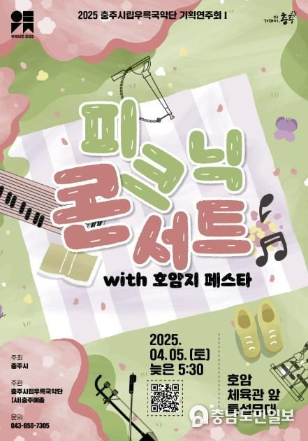 이번 공연은 충주시민들이 야외에서 부담 없이 국악의 매력을 즐길 수 있도록 마련된 2024년 첫 번째 기획 연주회로, (사)충주예총이 주관하는 ‘호암지 페스타’와 연계해 진행된다.