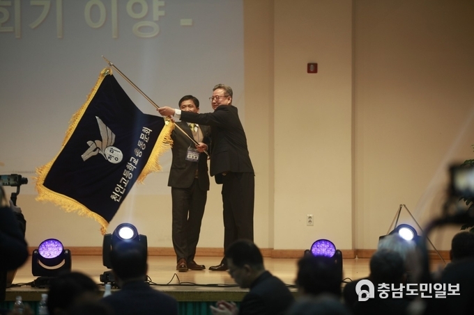 (충남도민일보 =천안) 정연호기자/ 천안고등학교 총동문회는 9일  천안고 실내체육관에서 동문 200여명이 참석한 가운데 회장 이.취임식을 갖았다.