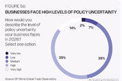 글로벌 무역 관측소 연례 전망: 관세, 비용 및 정책 불확실성에도 불구하고 94%가 2026년도 성장세를 2025년도와 유사 내지 상회할 것으로 예상 다보스, 스위스, 2026년 1월 21일 /PRNewswire/ -- 글로벌 무역 전망은 취약해 보이지만 비즈니스 신뢰도는 그렇지 않다. 이는 DP 월드(DP World)의 신간 글로벌 무역 관측소(Global Trade Observatory, GTO) 2026 연례 전망 보고서(Annual Outlook Report 2026)의 요점으로, 응답자의 94%가 마찰과 변동성 증가에도 불구하고 2026년도 무역 성장세가 2025년도와 비슷하거나 이를 상회할 것으로 예상했다. BUSINESSES FACE HIGH LEVELS OF POLICY UNCERTAINTY 이번 결과는 다보스에서 열리는 세계경제포럼(World Economic Forum) 연례 회의를 앞두고 8개 산업 분야와 19개국에 포진한 3500명의 공급망 및 물류 고위 경영진을 대상으로 실시한 설문조사를 기반으로 한다. 전체적으로 54%는 무역 성장이 2025년보다 빠를 것으로 예상했고 40%는 동일할 것으로 내다봤다. 이는