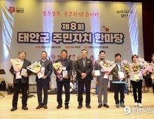 (충남도민일보 =태안) 문성호기자/지역 주민자치위원과 주민들이 함께 어울리는 흥겨운 축제 한마당이 충남 태안에서 펼쳐졌다. 태안군은 지난 17일 태안문화원 아트홀에서 가세로 군수 등 군 관계자와 도·군의원, 태안군 주민자치협의회 김관래 회장 및 회원 등 200여 명이 참석한 가운데 ‘제8회 태안군 주민자치 한마당’이 개최됐다고 밝혔다. 태안군이 주최하고 태안군 주민자치협의회가 주관한 이번 행사는 지역 주민들의 자치역량 강화를 도모하고 주민 간 소통의 장을 마련하기 위한 것으로, 올 한해 주민자치회원들이 거둔 다양한 성과를 한자리에서 만나볼 수 있어 관심을 모았다. 풍물, 라인댄스, 밴드, 하모니카 등 8개 읍면 주민자치회의 노력과 열정이 담긴 주민자치 공연 프로그램 발표가 진행됐으며, △퀼트공예 △가죽공예 △재봉 △캔버스 캘리그라피 △업싸이클링 △캔들 △액자 △컬러링화 △식물 세밀화 △연필 드로잉 등 회원들의 작품도 함께 전시돼 호응을 얻었다. 또한, 주민자치 우수사례 전시 및 유공자 표창과 더불어 △이주민 정착을 위한 주민자치회의 노력을 담은 ‘이주민 커넥션 플랫폼(남면)’ △주민총회의 개선과정을 담은 ‘주민총회(이원면)’ 등 우수사례 발표가 진행돼 큰 박