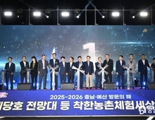 (충남도민일보 =예산/ 정연호기자) 예산군은 10월 1일 예당호 전망대 앞 신설 주차장에서 ‘예당호 착한농촌체험세상’ 개장식을 성황리에 개최했다고 밝혔다. 개장식은 식전 공연을 시작으로 개장 선언, 군민의 상 시상, ‘2025∼2026 충남·예산 방문의 해’ 선포식, 야간 경관조명 퍼포먼스 등 다채로운 프로그램이 진행되며 축제 분위기를 더했다. 이번 행사는 그동안 군이 추진해 온 예당관광지 새단장(리뉴얼) 조성사업의 본격적인 시작을 알리는 자리로 최재구 군수를 비롯해 지역 국회의원, 도·군의원, 기관단체장, 주민, 관광객 등 500여명이 참석해 의미를 더했다. ‘예당호 착한농촌체험세상’은 예당호가 한눈에 보이는 예당관광지에 2017년부터 총사업비 428억원을 투입해 총면적 13만209㎡에 전망대, 팜센터, 농촌지원센터, 숙박동(10동) 등을 갖춘 복합 체험형 관광지로 조성됐으며, 이를 통해 예당호는 농촌 체험, 음식, 숙박이 결합된 새로운 관광지로 거듭났다. 최재구 군수는 “예당호 착한농촌체험세상은 예산군 농촌의 따뜻한 정서와 자연의 아름다움을 함께 경험할 수 있는 공간”이라며 “앞으로도 지속적인 콘텐츠 개발과 프로그램 확장을 통해 충남을 대표하는 체험형 관