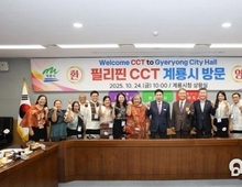 (충남도민일보(도민방송)=계룡) 김천호기자/ 계룡시는 24일 필리핀 CCT(The Center for Community Transformation) 방문단과 공동가치와 선진사례를 공유하는 시간을 가졌다고 밝혔다 지역 리더들로 구성된 필리핀 CCT 방문단은 소외된 지역사회와 가족을 구호하고 전인적 변화를 추구하는 NGO로서 계룡시의 행정우수사례 벤치마킹을 위하여 방문했다. 이날 간담회에서는 양측이 복지행정, 시민교육, 지역개발 등 분야별 우수사례 및 CCT의 공동체 변화 프로그램을 공유하고 계룡시의 시민참여형 시정 모델을 소개하는 시간을 가졌다. 특히, 계룡시의 시민참여·소통정책과 CCT의 지역공동체 중심 개발사업이 맞닿아 있다는 점에서 상호 가치 공유의 의미가 더욱 깊게 평가됐다. 방문단은 이후 계룡시 민원실과 재난상황실을 둘러보며 디지털 민원서비스 및 재난대비 실시간 상황 운영을 벤치마킹하는 시간을 갖기도 했다. 이 시장은 “계룡시와 필리핀은 비록 국가와 제도는 다르지만 시민이 중심이 되는 행복도시를 실천하는 가치는 같다”며 “서로의 경험을 통해 더 따뜻하고 건강한 공동체로 성장하길 바란다”고 전했다.