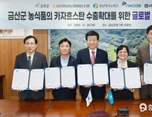 (충남도민일보 =금산) 김천호기자/ 금산군은 지난 20일 군청 상황실에서 농식품 수출확대를 위해 금산인삼농협, (재)충남테크노파크, ㈜트리코스, 코리안 룩스(KOREAN LUXE)와 5자간 업무협약을 체결했다. 이번 업무협약을 통해 군은 지역 농식품의 글로벌 시장 확대를 위해 업체들과 협력할 방침이다. 특히, (재)충남테크노파크의 지원 사업을 계기로 진행된 카자흐스탄 수출상담회의 성과를 바탕으로 카자흐스탄을 포함한 중앙아시아 시장으로의 수출 확대에 나선다. 협력 기관들은 신뢰를 바탕으로 공동의 목표를 위해 긴밀히 협력할 계획이며 금산군 농식품의 품질과 경쟁력을 강화하고 이를 국제 시장에 적극적으로 알리기 위한 글로벌 마케팅을 전개한다. 군 관계자는 “이번 협약을 통해 금산군 농식품이 카자흐스탄 시장을 넘어 중앙아시아 전역으로 확장할 수 있는 가능성을 보여줬다”며 “금산군 농식품이 글로벌 시장에서 경쟁력을 갖출 수 있도록 노력하겠다”고 말했다. 이어 “계속해서 금산군 농식품 산업 발전에 기여하고 지속 가능한 글로벌 파트너십을 구축할 수 있도록 최선을 다하겠다”고 덧붙였다.