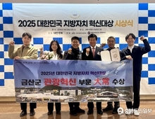 (충남도민일보=금산) 김천호기자/ 금산군은 20일 서울시 강남구 논현동 건설회관에서 열린 2025 대한민국 지방자치 혁신대상 시상식에서 관광혁신부문 대상을 받았다. 대한경제신문이 주최하고 국회 행정안전위원회 및 대한민국시장·군수·구청장협의회에서 후원하는 이번 시상식에서 군은 농업 중심 지역에서 문화·관광 융복합 도시로의 전환을 추진하며 체류형 관광 모델을 성공적으로 구축한 점이 좋은 반응을 이끌었다. 또한, 세계인삼수도 금산 선포와 금산인삼의 날(10월 23일) 제정을 통해 고려인삼 종주지의 위상을 공고히 한 점도 높은 점수를 받았다. 지난 2023년 금산세계인삼축제의 글로벌화를 계기로 군에 인공지능(AI) 기반 스마트관광이 도입됐으며 해외 4개국 5개 도시 및 5개 단체와 협약을 통해 국제 네트워크도 확장됐다. 그 결과 미국 캘리포니아주 하원 의회에서 한국 인삼의 날(10월 23일)을 제정하는 등 금산인삼이 세계에 알려지는 성과를 거뒀다. 금산세계인삼축제는 지난해 방문객이 115만 명을 기록했으며 경제 파급효과는 3644억 원에 달했다. 또한, 세계축제협회 피나클 어워드에서 3년 연속 수상하며 글로벌 경쟁력을 입증했다. 여름철 관광 수요를 견인한 금산삼계탕