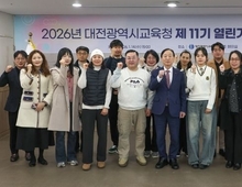 (충남도민일보 =대전) 정연호기자/ 대전시교육청은 1월 14일, 시교육청 회의실(701호)에서 교육 현장의 생생한 소식을 전달하고 소통을 이어갈[제11기 열린기자단 발대식]을 개최했다고 밝혔다. 이번 열린기자단은 지난달 4일부터 11일까지 공개 모집을 거쳐 선발됐으며, 학생, 학부모, 교직원은 물론 사회 각층의 여러 분야에서 활동하는 전문가까지 폭넓게 구성됐다. 이들은 올해 12월까지 대전교육의 주요 정책을 홍보하고 학교 현장의 생생한 이야기를 전하는 소통의 메신저 역할을 수행하게 된다. 기자단은 다양한 SNS 플랫폼을 적극 활용해 신선한 교육소식을 실시간 전파할 예정이다. 내부 직원들이 미처 볼 수 없었던 참신하고 차별화된 시선으로 대전교육의 숨은 매력을 발굴해 낼 것으로 기대를 모으고 있다. 이번 발대식에서는 위촉장 수여와 더불어 기자단으로서 원활한 활동을 돕기 위한 원고 작성법 및 SNS 콘텐츠 제작 교육을 진행했다. 또한, 현장 취재 시 사용할 수 있는 SNS 기자증과 명함을 제공해 기자로서의 자긍심과 책임감을 높였다. 대전시교육청 차은서 공보관은 “대전교육 홍보를 위해 적극적으로 동참해 주신 기자단 여러분께 깊이 감사드린다”며, “기자단이 전하는 생
