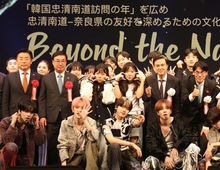 (충남도민일보(도민방송) =충남) 정연호기자/ 일본 고대 문명의 심장으로, ‘한류 원조’ 백제와 인연이 깊은 나라현에서 케이(K)-팝을 통한 우정과 화합의 장이 펼쳐졌다. 충남도와 나라현이 함께 마련한 이 자리에서 김태흠 지사와 야마시타 마코토 나라현지사는 ‘교류 강화 공동선언’을 채택하며 양 도·현의 관계를 한층 강화하기로 약속했다. 도와 나라현은 24일 저녁 나라현 ‘나라 100년 회관’ 등에서 ‘비욘드 더 네이션(Beyound the Nation)’ 문화교류 공연을 개최했다. 충남-나라현 우호협력협정 체결 15주년 등을 기념해 마련한 이번 공연에는 김태흠 지사와 야마시타 마코토 지사, 재일동포, 나라현민 등 2000여 명이 참석했다. ‘교류와 전통, 미래를 잇다’를 주제로 한 1부 공연은 충남과 나라현의 역사적 관계와 현재의 문화적 교류, 미래 세대의 협력을 담아냈다. 충남과 나라현을 주제로 한 영상 상영을 시작으로 충남 K-팝고와 일본 국제고, 상명대의 공연, 부여충남국악단과 일본전통국악단 공연 등 현대와 전통이 어울린 무대로 흥을 돋웠다. ‘한류 우정을 노래하다’ 공연은 K-팝 아티스트의 열정적인 무대와 K-트로트의 세대를 아우르는 하모니가 펼쳐졌다