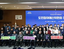 (충남도민일보 = 충남) 정연호기자/ 충남도가 올해 ‘도민참여예산’의 운영방향을 도민과 함께 결정하기 위한 자리를 마련했다. 도는 9일 도청 대회의실에서 양승찬 도 자치안전실장, 도민참여예산위원, 시군 참여예산위원 등 100여 명이 참석한 가운데 ‘2026년 제1차 도민참여예산위원회 정기총회’를 개최했다. 이번 총회는 올해 도민참여예산제 운영계획(안)에 대한 도민 의견을 수렴하고, 지난해 운영 과정에서의 보완사항 등을 논의하기 위해 개최했다. 회의는 △지난해 성과 보고 △올해 운영계획 보고 △도민참여예산제 운영 의견수렴 순으로 진행됐다. 도는 운영계획 보고를 통해 사업분야 중 ‘도민 안전’ 분야 신설과 제안사업에 대한 전문가 자문(컨설팅) 지원 계획을 밝혔다. 도민 안전 분야는 도민의 재난·재해 예방사업을 참여예산사업으로 지원할 수 있도록 함과 동시에 계층별 찾아가는 참여예산 교육 확대, 도-시군 참여예산위원 교류 활성화 등 제도의 질적·양적 효과를 높이는 것이 목표이다. 이와 함께 제안사업 전문가 자문(컨설팅)을 추진해 도민의 참신한 사업 아이디어에 행정적·기술적 전문성을 더해 단순 제안이 실제 정책사업으로 이어질 수 있는 방안을 중점 검토한다. 아울러,