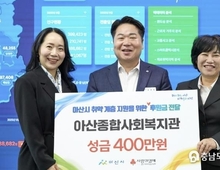 (충남도민일보 =아산) 정연호기자/ 아산시는 아산종합사회복지관이 지난 17일, ‘세대통합 온(溫)마을 축제 가치놀자, 함께놀자’를 통해 마련한 후원금과 부스 운영 수익금을 아산시에 전달했다고 밝혔다. ‘세대통합 온(溫)마을 축제’는 아동·청소년, 청년, 어르신 등 모든 세대가 함께 어울리며 소통과 공감의 가치를 나누는 행사로, 복지관이 주도적으로 기획하고 지역사회·기업·개인이 한마음으로 참여해 취약계층을 돕고자 마련됐다. 이번에 전달된 후원금은 아산시 취약계층 지원에 사용될 예정이며, 축제의 즐거움이 이웃의 따뜻한 겨울나기로 이어지는 선한 영향력의 출발점이 되고 있다. 이영해 관장은 “시민이 함께 웃고 나누는 축제를 통해 지역사회가 한층 더 따뜻하게 하나 되는 모습을 보았다”며 “앞으로도 세대와 계층을 아우르는 복지관으로서 아산의 행복공동체를 만드는 데 최선을 다하겠다”고 말했다. 오세현 아산시장은 “항상 지역 복지 향상과 나눔 문화 확산에 앞장서 온 아산종합사회복지관과 참여자 여러분께 깊이 감사드린다”며 “후원금이 도움이 필요한 이웃에게 소중히 전달되도록 하겠다”고 말했다.