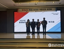 (충남도민일보 =아산) 정연호기자/ 아산시는 5일 보령시 호텔 쏠레르에서 열린 충청남도 주관 ‘2025년 충남 시군 특사경 우수기관 평가’에서 민생 6대 분야 특별사법경찰 활동 우수기관에 선정됐다고 밝혔다. 이번 수상으로 아산시는 4년 연속 우수기관으로 선정되는 영예를 획득하며 특사경 활동에서 두각을 드러냈다. 특히, 시는 시민의 생활과 밀접한 관련이 있는 민생 6대 분야 △식품(식품접객업 등) △공중위생(이미용업 등) △축산물위생(축산물 취급 업소) △원산지(음식점) △환경(가축분뇨, 대기, 물 환경 등) △청소년보호(청소년 출입·고용금지 업소 등)에 대한 특별사법경찰 활동에서 높은 평가를 받았다. 장윤창 안전총괄과장은 “아산시민의 행복한 삶을 위해 안전한 먹거리 확보와 법질서 확립을 위해 특사경 활동을 더욱더 활발히 하겠다“고 말했다.