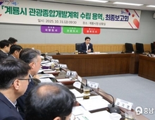 (충남도민일보(도민방송) =계룡) 김천호기자/ 계룡시는 지난 31일 시청 상황실에서 ‘계룡시 관광종합개발계획 수립 용역’ 최종보고회를 개최하고 지난 6개월간의 연구 성과와 향후 추진 전략을 공유했다. 이번 보고회에는 이응우 시장을 비롯한 관계자 20여 명이 참석해 그간의 추진 성과를 점검하고 계룡시 관광의 중장기 발전 방향에 대해 심도 있는 논의를 진행했다. 시는 올해 5월부터 지속 가능하며 특색있는 관광발전 전략을 수립하고자 기본현황 조사, 관광객·잠재 관광객 대상 설문조사, 시민·전문가 의견수렴을 위한 시민공청회를 거쳐 관광종합개발계획을 마련했다. 이번 계획에는 ▲관광 비전 및 추진 전략 ▲권역별 관광개발 구상 ▲개발계획 및 진흥사업의 전략 추진 방향 등이 포함되어 있으며, 시는 이를 토대로 중·장기별 추진 과제를 구체화하고 관광콘텐츠 개발을 단계적으로 추진해 나갈 계획이다. 이응우 시장은 “관광종합개발계획 수립이 완료되어 이후 실행과 관리가 중요하다”며 “부서 간 협업과 현장 중심의 추진체계를 강화해 관광도시 기반을 다져 나가겠다”고 말했다.