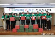 (충남도민일보(도민방송) 정연호기자) 초록우산 어린이재단 충주후원회(회장 문대식)가 16일 ‘2024년 산타 원정대 in 충주 행사’를 개최하고 충주시에 취약계층 드림스타트 사례관리 아동을 위해 300만 원 상당의 크리스마스 소원 선물을 전달했다. 이번 행사에서 마련된 선물은 취약계층 드림스타트 사례관리 아동 20여 명에게 전달된다. 이날 행사에 참여한 충주후원회와 시 관계자들은 함께 아동에게 전달될 소원 선물을 정성스레 포장하고 성탄 카드도 작성했다. 초록우산 어린이재단에서 개최하는 ‘산타원정대’는 나눔의 즐거움과 기부문화 확산을 위해 2007년부터 시작된 초록우산의 연말 대표 캠페인으로, 올해로 18번째를 맞이했다. 이번 행사를 주최한 문대식 회장은 “충주의 아동들이 행복하고 건강한 겨울을 보내는 데 도움이 됐으면 좋겠다”라며, “이웃사랑 나눔을 실천할 수 있어서 기쁘고, 어려운 환경에 놓인 아동에 대해 지속적인 관심을 두시면 감사하겠다”고 전했다. 조길형 시장은 “어려운 시기에 나눔을 함께해 주신 초록우산 어린이재단 충주후원회에 감사드린다”라며, “전달해 주신 따뜻한 마음이 아동들