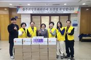 (충남도민일보(도민방송) 정연호기자) (사)무궁화복지월드 충주봉사단은 17일 충주시자원봉사센터와 교현2동 행정복지센터를 방문해 회원들이 정성들여 담근 김치 5kg 30박스를 각각 기탁했다. 자원봉사센터와 교현2동 행정복지센터는 김장 김치를 관내 저소득 홀몸어르신과 1인 장년층 가구 등 취약계층 60가구에 나눠드리면서 이웃의 따뜻한 온정을 전달할 예정이다. (사)무궁화복지월드 충주봉사단은 불우이웃돕기, 장학금 지원, 환경정화 등 다양한 봉사활동을 펼치고 있다. 정용채 단장은 “추운 겨울을 보내고 있을 소외된 이웃들에게 작은 나눔을 할 수 있게 돼 기쁘게 생각한다”며 “앞으로도 지역의 이웃들에게 관심을 갖고 주변을 돌볼 수 있는 봉사활동을 이어가겠다.”고 말했다.
