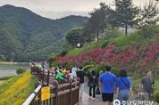 (충남도민일보 / TV / 정호영기자) 충북 단양군 도담정원에 꽃들이 만개해 장관을 이뤘다. 군은 도담리 수변 유휴부지에 조성한 도담정원에 온갖 꽃들이 만개해 관광객들의 발길이 연일 이어지고 있다고 밝혔다. 단양팔경 중 제1경인 도담삼봉을 배경으로 도담정원에 심은 봄꽃이 무지개 형상 꽃밭으로 태어났다. 도담정원은 캘리포니아양귀비, 잉글랜드양귀비, 수레국화, 말뱅이나물, 보리, 끈끈이대나물, 안개초, 가우라 등 형형색색의 꽃들로 가득 찼다. 지난 3월경 단양읍 도담리 주민들과 단양군 여성단체협의회원들이 식재한 봄꽃들이 따뜻한 봄바람을 타고 너울거리고 있다. 또 도담행복마을 만들기 사업의 일환으로 마을 목공예 기념품 판매장과 메밀전, 감자전, 도토리묵 등 먹거리 장터를 열어 관광객에게 시골의 정겨운 맛을 선물할 예정이다. 도담정원 봄꽃 식재 사업은 2022년 수자원공사(K-Water) 주관 ‘댐주변지역 지원사업’ 공모 선정으로 추진됐다. 이 사업으로 도담삼봉과 연계한 새로운 경관 체험형 관광지를 조성하기 위해 단양읍 도담리 195번지 일원에 계절초화류 정원을 개설했